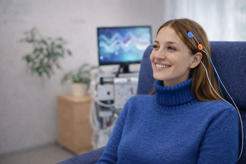 Some people with insomnia, sleep disruption or chronic fatigue explore neurofeedback to support brain rhythms linked to sleep–wake cycles, rest, and recovery.
